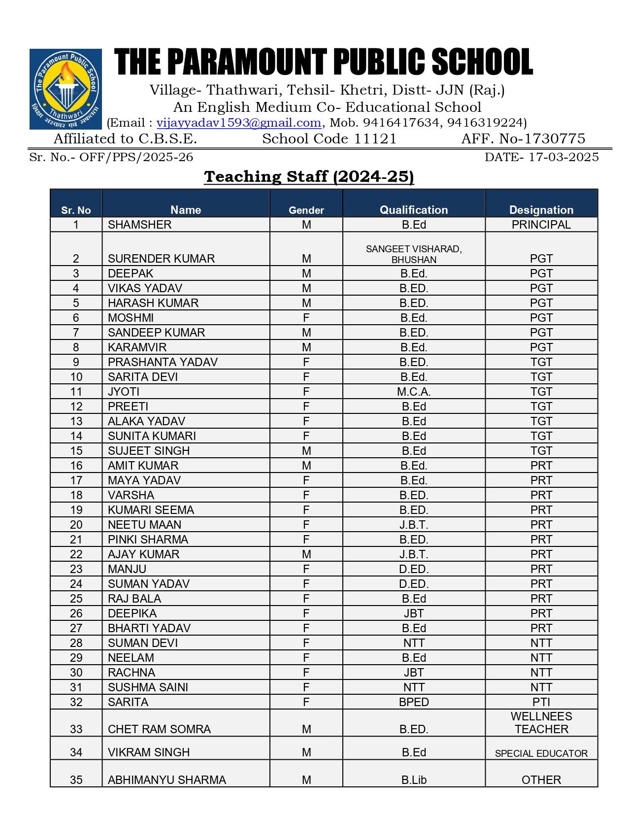 Teaching Staff: